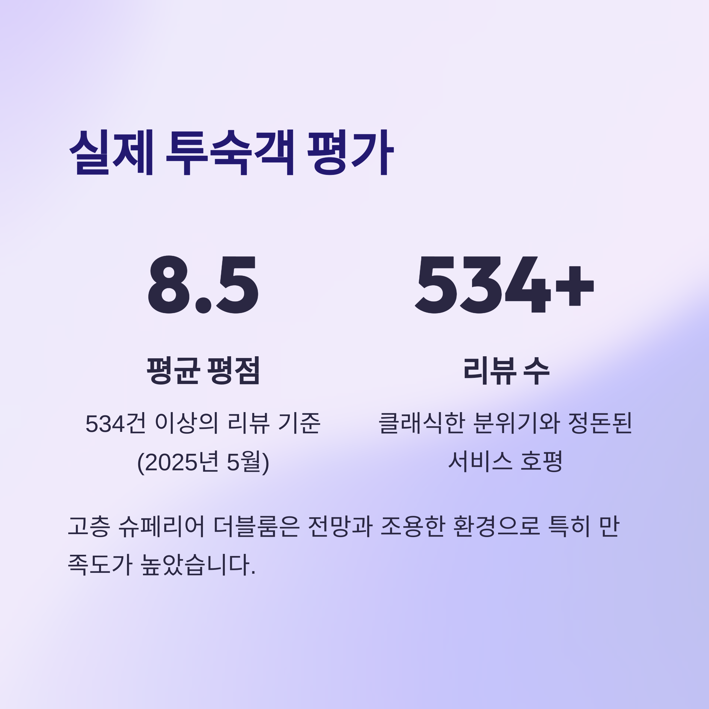 특히 고층 슈페리어 더블룸은 전망과 조용한 환경 덕분에